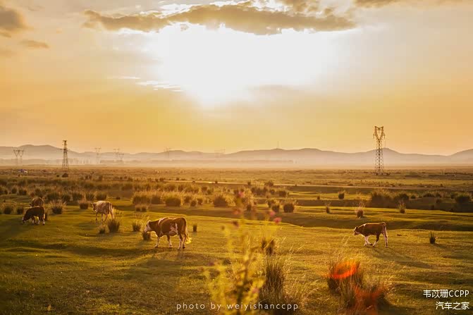 太阳慢慢西斜,我们也慢慢开出浑善达克沙地,草原在斜阳中有美丽的金色光影,牛羊悠然地回家了,看着这幅景象,内心有一种真正的平静之感,也许这就是大草原的辽阔才能传递出来的治愈吧。