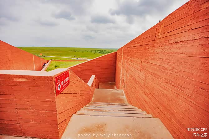 元上都博物馆的亮点其实也有很多,橙红色的博物馆坐落在一个小山包的后面,需要乘坐景区车前往。和草原的弧度巧妙结合,红墙错落设计,非常有意思。这个博物馆的设计师可是大有来头,是“鸟巢”的的总设计师李兴钢,非常值得拍照。