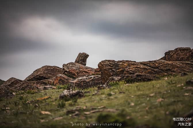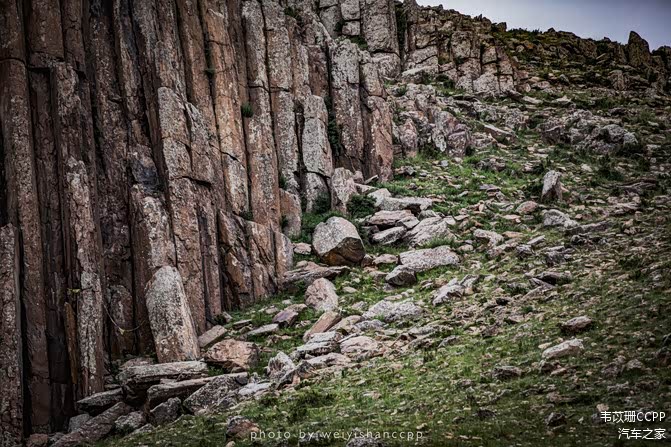 位于内蒙太仆寺旗的石条山是我国七大火山岩石柱群之一,石柱是火山喷出的岩浆凝结而成的玄武岩石柱。石条山的形成在约两亿三千万年前,在海洋深处的海底,因为纬度高海水冷,火山喷发的熔岩被海水迅速冷却,就形成了柱状节理(石条的样子)。除了石条山本身,这个山坡也散落着很多大石头,看起来荒蛮而神秘,搭配着今天的阴雨天,竟然有一种在冰岛的感觉。