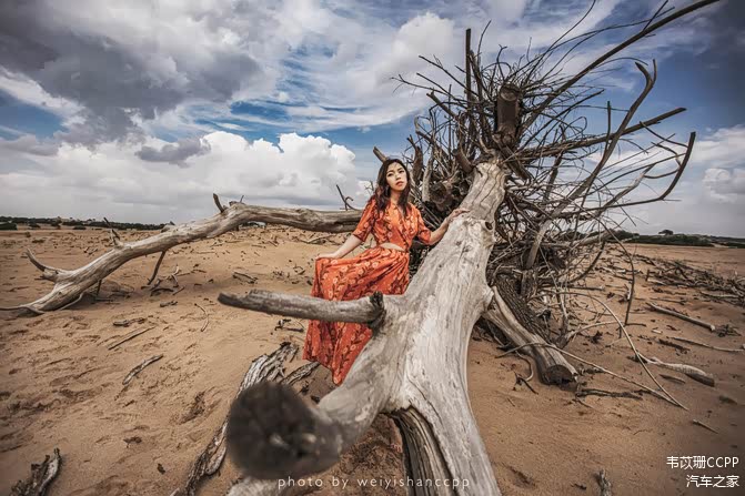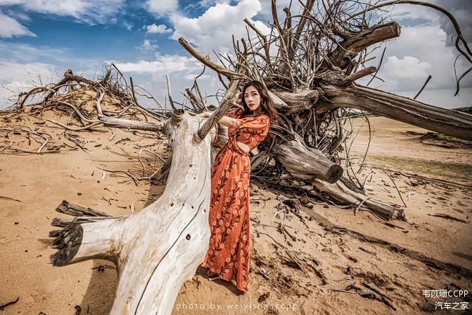浑善达克沙地里有很多枯树枝,和黄色的沙地搭配特别有颓废之美,也是拍大片的好地方,这里我可以拍上200张!