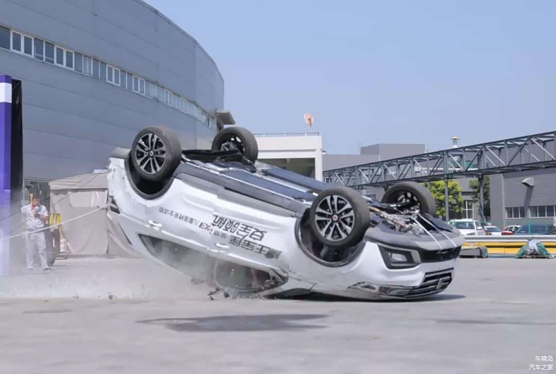 一辆装配儿童安全座椅的SUV以每小时50公里的速度从单侧的一个坡道上起跳,车辆侧倾、翻滚,最终摔个底朝天,滑停在了试验场地上。碰撞试验室的工程师说,这种螺旋式翻滚工况的试验,主要模拟的就是车辆行驶过程中失控、侧翻的交通事故形态,以此来考量安全座椅对儿童头、颈、胸、腹等部位的损伤及保护程度。