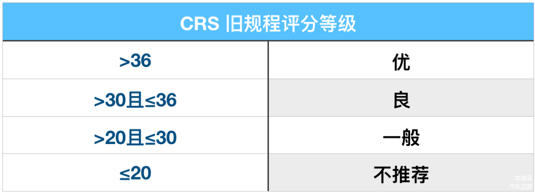 举个例子,如果一台儿童座椅经过评测后得分是28分,按旧规则的评级标准,是“一般”,按新规则评级则为“良”;拿32分,按旧规则是“良”,按新规则里则评级为“优”。