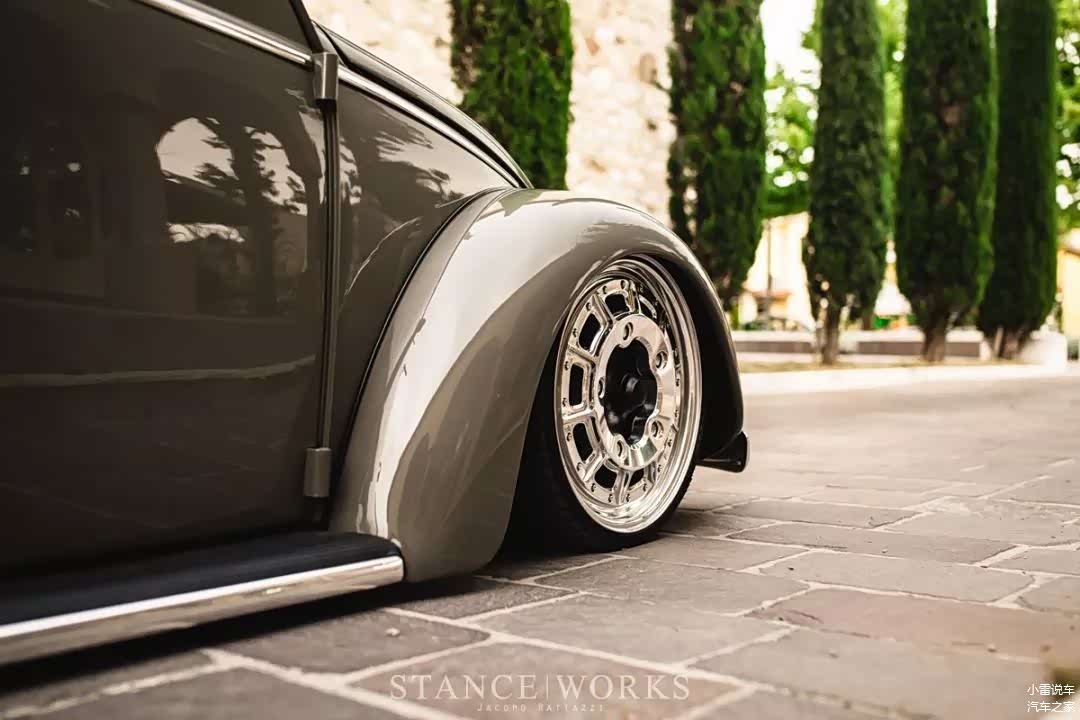在气动悬挂系统的帮助下,这台甲壳虫可以轻易的车身升高或降低下来,当它趴下来后,看起来相当有感觉。