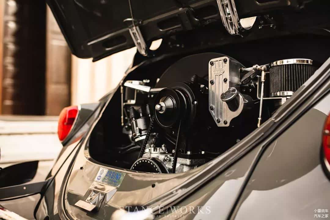 动力方面,虽然这台风冷甲壳虫和性能扯不上太大关系,但为了满足现代人的驾驶需求,车主还是为其做了一些升级改装,比如原厂的1.2L引擎被升级到1.6L,配备双EMPI化油器和一套CSP排气,意图将甲壳虫标志性的风冷引擎的声浪释放出来,当然了,对于这样一台车龄不短的老车,动力单元的修复也是必不可少的。