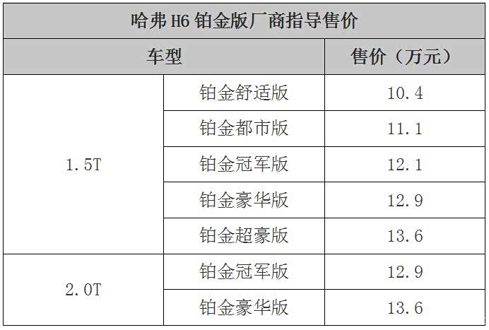 买车网2019成都车展前方报道小分队传来消息,哈弗H6铂金版正式上市,厂商指导售价为10.4万-13.6万元。新车在外观方面与现款在售车型保持高度相似,配置上有所调整,动力方面则搭载1.5T和2.0T两款发动机。
