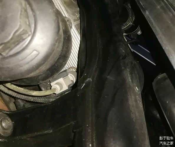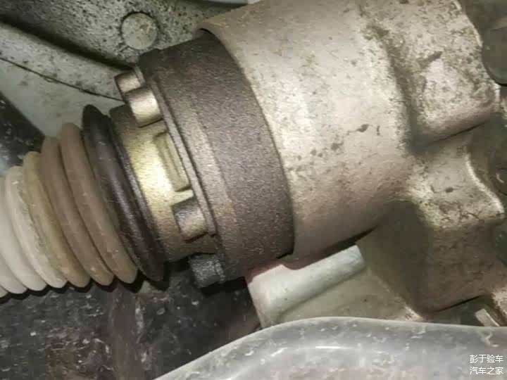 我们将车辆举升起来查看,发现这台车的底盘整体还是比较规整的,只有变速箱前半轴球笼有油污。