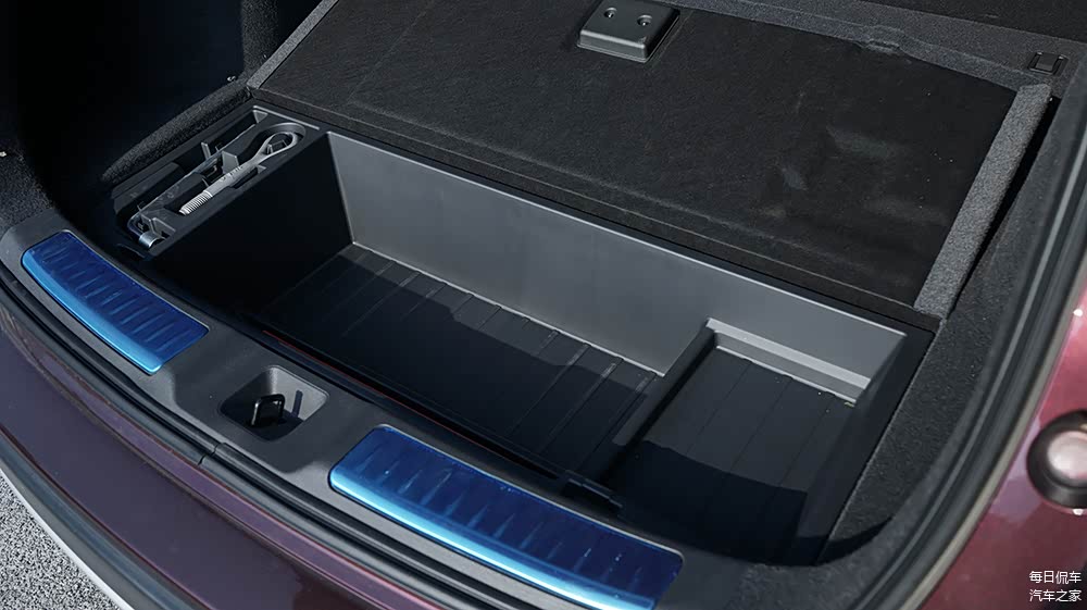地板下方并无配备备胎,取而代之的是一套维修工具和较深的储物空间,隐蔽的空间可放置贵重的私人物品,也可以放置一些较高的树立物品。整体来说,车厢空间的储物能力是相当高的。