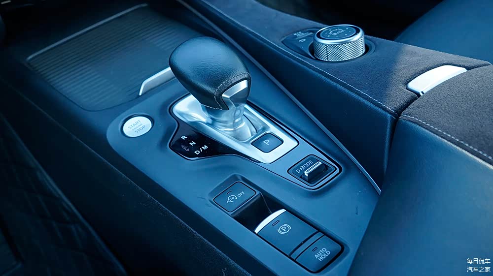 挡杆台造型修长,同样采用Ultrasuede™麂皮与皮革拼接设计包裹,细节之处还采用了缝线处理,档次感非常高,触感也非常细腻。