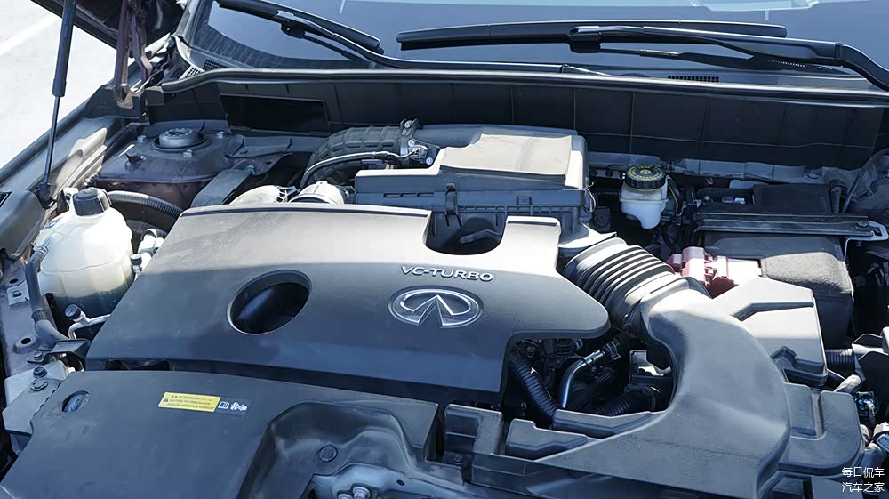 QX50全系搭载的都是这台2.0T涡轮增压可变压缩比发动机,分为高低功率版本,低功率版本为两驱版车型搭载,最大功率180kW(245Ps)/5600rpm,最大扭矩380Nm/4400rpm。高功率版本为四驱版车型搭载,最大功率200kW(272Ps)5600rpm,最大扭矩380Nm/4400-4800rpm。全系均匹配模拟8速CVT无级变速箱。