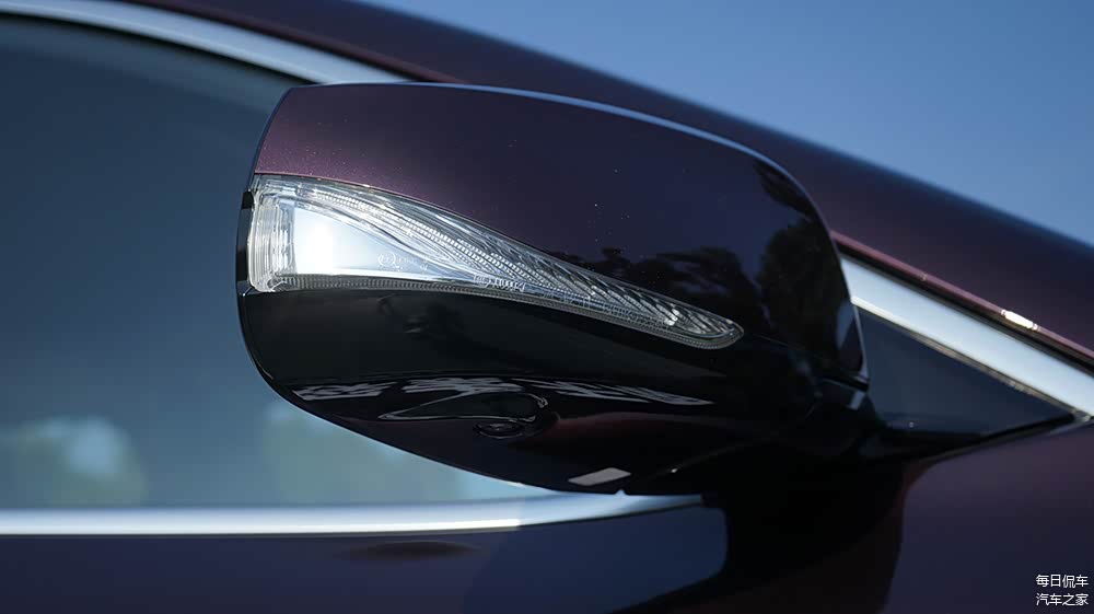 与车身同色的外后视镜集成了电动调节、折叠、记忆、加热、倒车自动下翻等功能,还集成了融合度较高的侧摄像头,可谓功能强大。另外,能够看到转向灯部分采用的是水晶样式,细节方面做得相当精致。