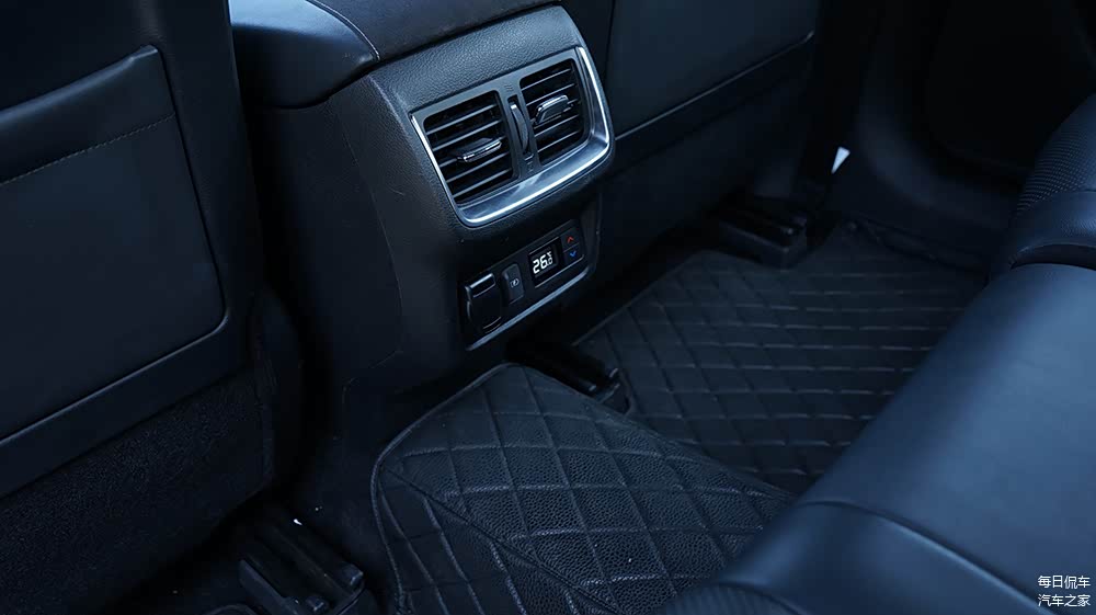 后排配备有独立分区空调、USB接口和12V电源,配置算是齐全。美中不足的是地台略微隆起,一定程度上侵占了后排尤其是中间乘客的腿部空间。