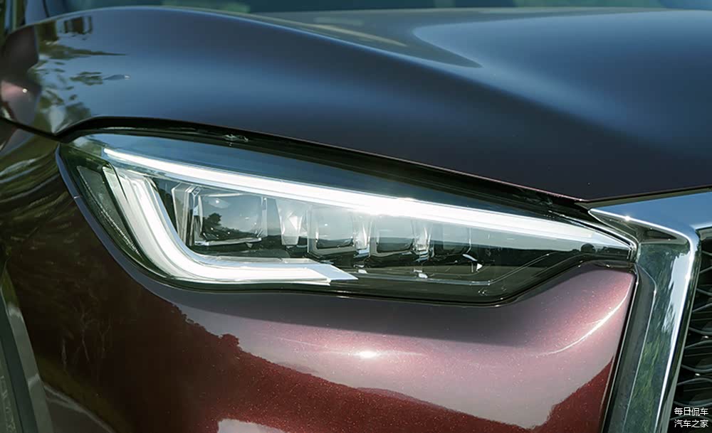 正面采用英菲尼迪最新家族式设计语言,官方认为现款QX50是英菲尼迪品牌迄今为止最完美的作品。确实,从外观上看,回归传统SUV造型后的QX50相比上一代车型更加符合国人审美,首先给人端庄大气的感觉,贝壳样式的引擎盖又呈现出丰富的力量感和立体感,同时又不乏时尚和年轻的气息。