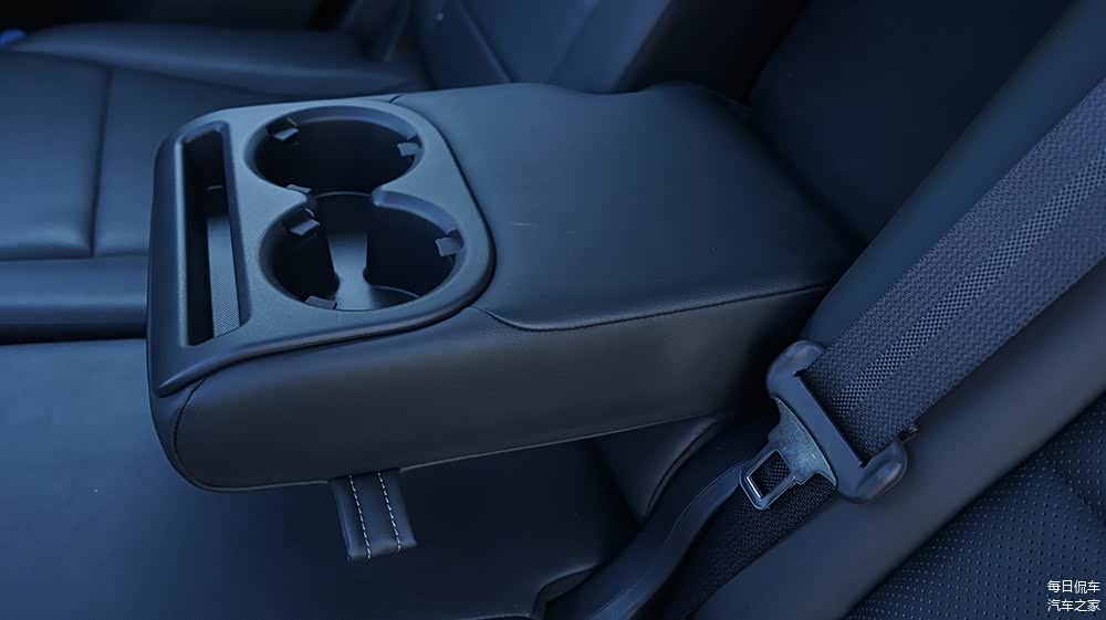 后排采用可翻折的中央扶手,配备两个带限位器的水杯架以及可放置手机的狭长储物槽。