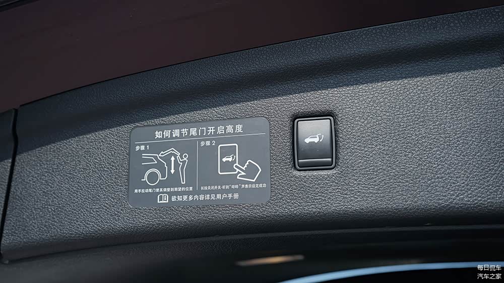 后尾门支持高度调节以满足不同人群的使用需求,人性化方面考虑的非常周到。