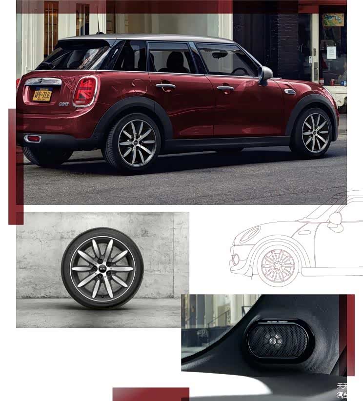 外观方面,基于现款MINI打造的新车特别的亮点就是使用了经典的勃艮第红车漆。这也是勃艮第红的车色首次出现在MINI COOPER三门和五门车型上,除此之外,两款曾仅供MINI CABRIO的专属轮毂这一次也出现在了新车上。新车配备了17英寸银色螺旋桨式或双色轮盘式两种造型轮圈,既新颖又时尚,此外,新车还配备了流光银颜色的车顶及后视镜盖。