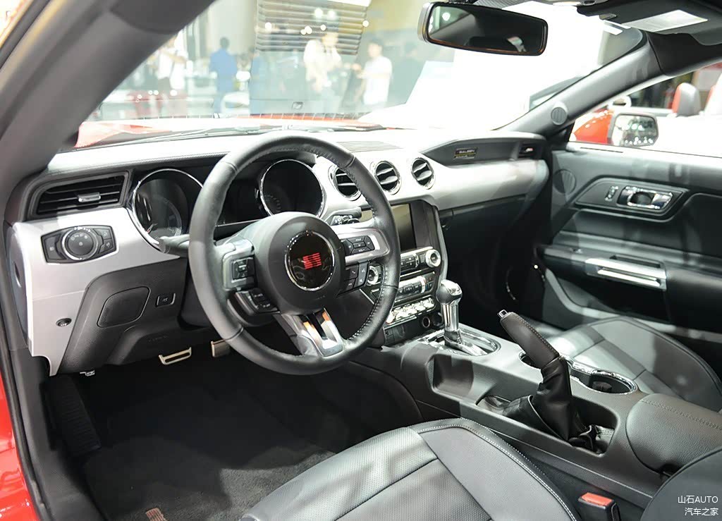 内饰方面和现款野马并没有太多的区别,采用了相同的布局设计风格,经典的三幅多功能运动方向盘握感很出色,尺寸大小也刚好合适,双炮筒式的仪表板运动感十足,很符合车型的定位,中控部分采用了大量的机械按钮,按键的触感非常清脆,这能给驾驶员带来更直接的反馈,经典的档杆似乎成为了野马非常具有辨识性的设计,即使你不认识这辆车,坐在车内看到这个档杆也会知道它是一辆野马跑车,而且这款车的乘坐空间也是比较宽敞的,虽然他是一辆双门跑车,但是它拥有四个座位,完全可以容纳四人乘坐,总体来说野马的内饰表现还是非常不错的。