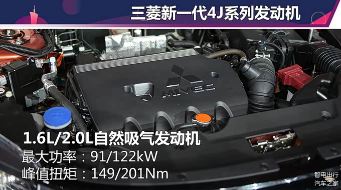 新劲炫ASX的动力系统搭载了三菱新一代4J系列的1.6L和2.0L自然吸气发动机,这款发动机拥有三菱独门的MIVEC技术,可实现气门正时与升程连续可调,其最大功率分别为91kW和122kW,峰值扭矩为149Nm和201Nm,传统系统与之匹配INVECS-Ⅲ CVT无级变速箱,在保证充沛动力输出的同时,能够有效保证日常用车的燃油经济性。