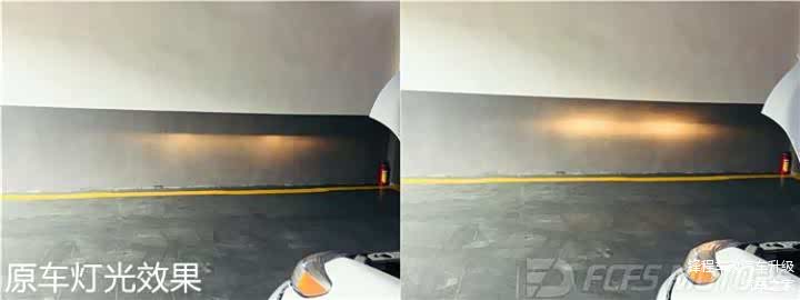 原车灯光效果:灯光照射严重不聚光,灯光严重闪。即使开远光作用不大,而且损害他人安全。这也是为什么道路上有这么多卤素灯车开远光,因为实在看不清楚了。