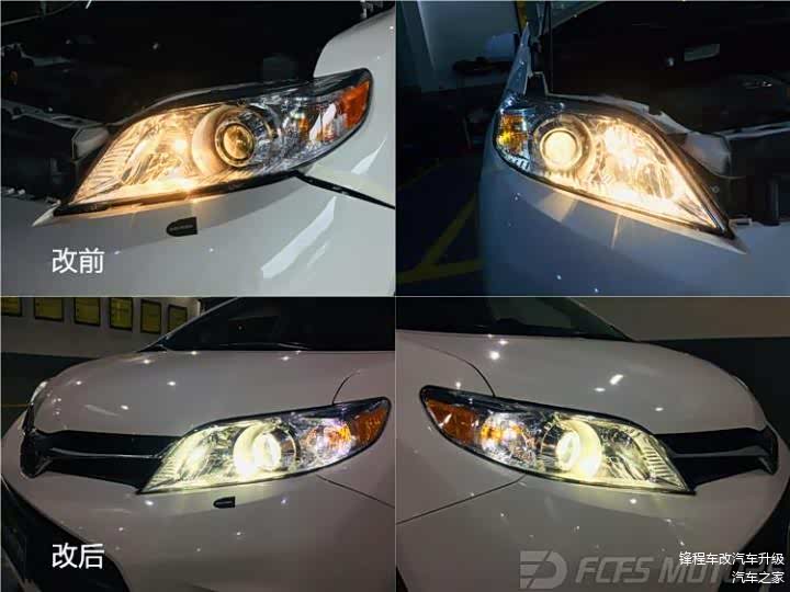 升级大灯后的丰田塞纳显示出时尚的前脸,灯光更加的明亮完全秒杀高配车型灯光,灯光效果和外观都达到车主要求,合理的灯光升级能够为您的爱车在夜视里行驶大大提高安全性。