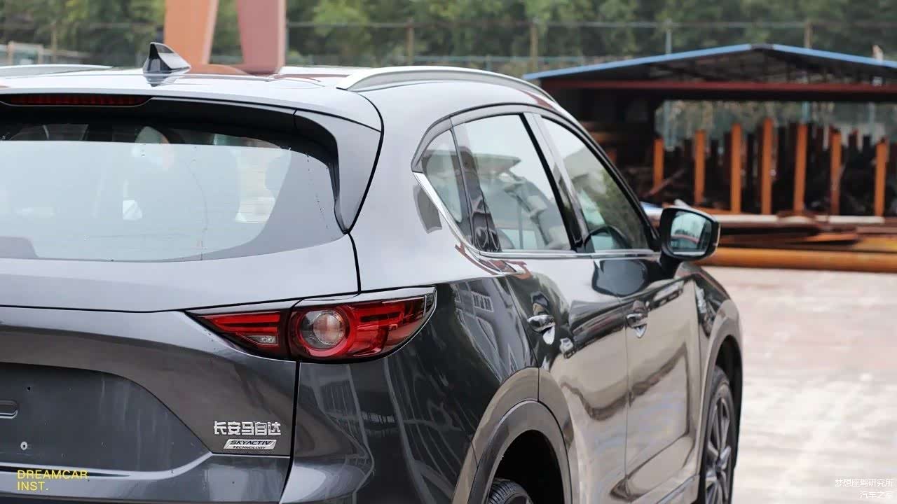 CX-5的车头,横贯的细长元素比较多,显得高耸,不过因为两侧的竖向线条太过平直,缺乏元素,所以正前或者正后方看起来,会显得车子比较窄,给人一种重心太高的感觉。