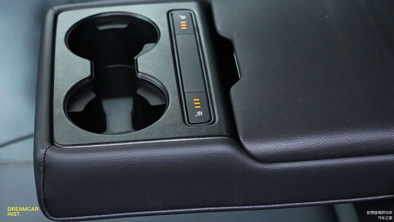 两边座椅都有加热,按钮在中间靠背放下来的扶手上,前面是两个杯架,后面还有储物的空间。