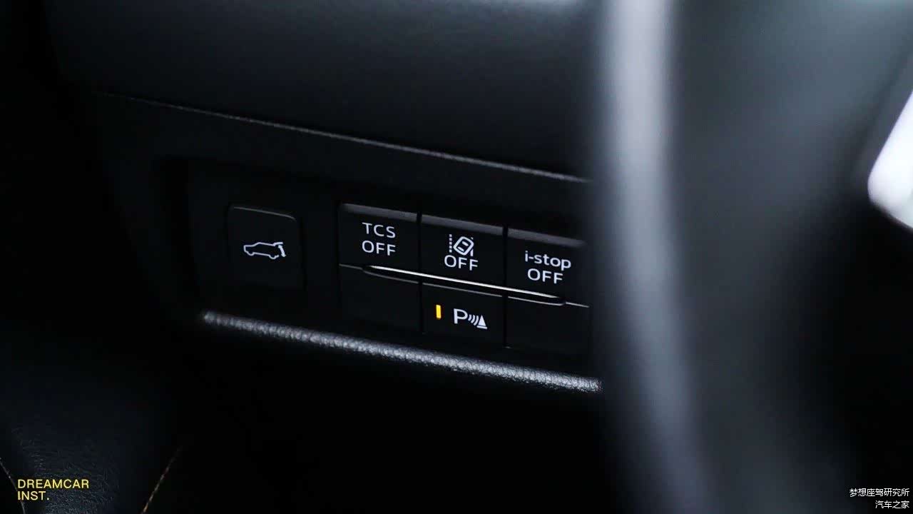 左下方,电尾门开关、TCS(ESP)开关、车道偏离预警开关、自动启停开关和前后雷达开关依次排列,我比较常用的,就是上车把启停关掉。
