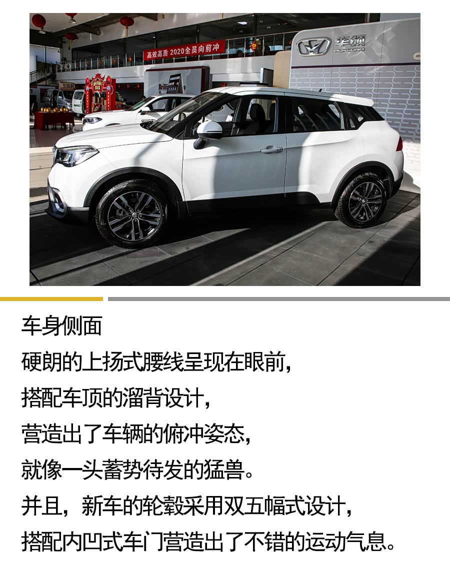 外观方面,全新中华V3采用了最新的家族式设计语言,前脸部位采用直瀑式进气格栅,并在中间弯折,形成了较强的断层感,中网上方有一根粗壮的镀铬饰条,连接了两枚大灯,整个前脸的造型都十分动感,搭配前保险杠下方的前铲,整体营造出不错的运动气息。