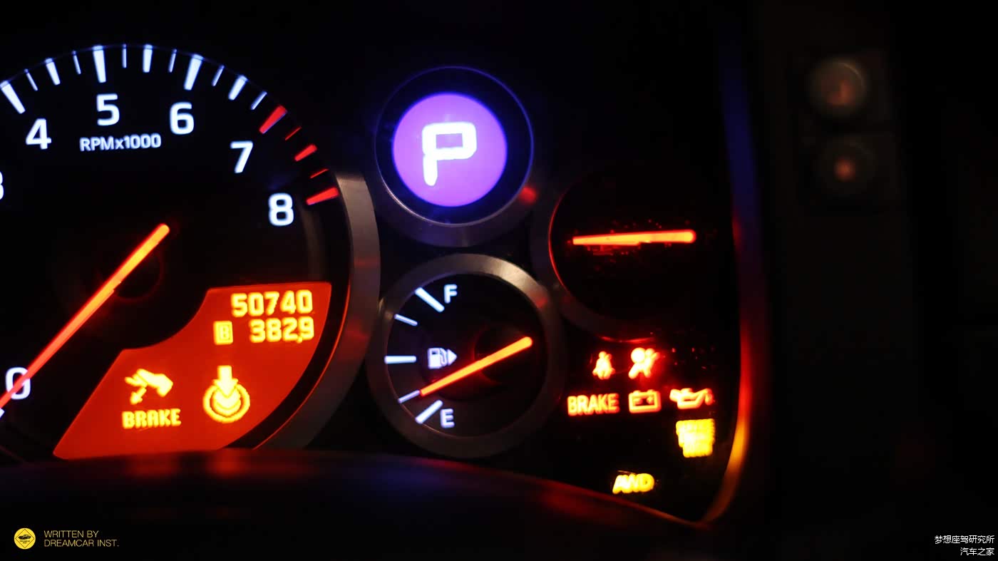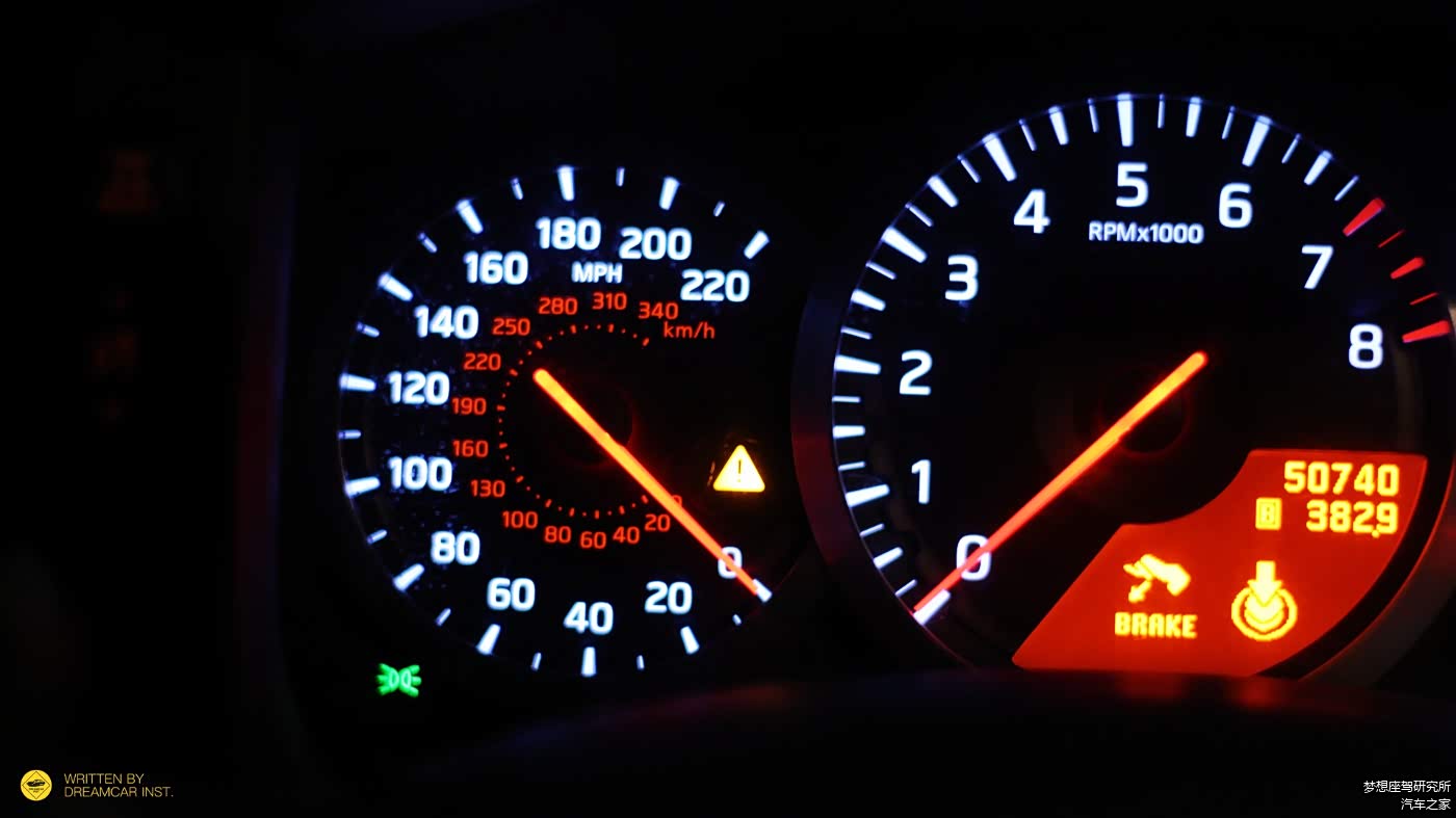 仪表的元素,是五个圆形表盘,尺寸各不相同,左侧两个大的是时速表和转速表,时速显示两种单位,表底分别是220MPH和340km/h,开车时需要注意,很容易就被外圈的MPH单位骗了吃超速罚单,此外指针的角度跟一般车型有很大的区别,初上手会有一些不适应;转速表内,安置了一块行车电脑。
