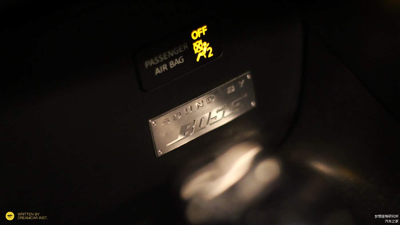 中控面板下方,贴着一块铭牌,告诉你这辆车的音响由BOSE打造,可在车门上方,最容易被人关注的高音喇叭上,却没有BOSE的LOGO,为了低调?