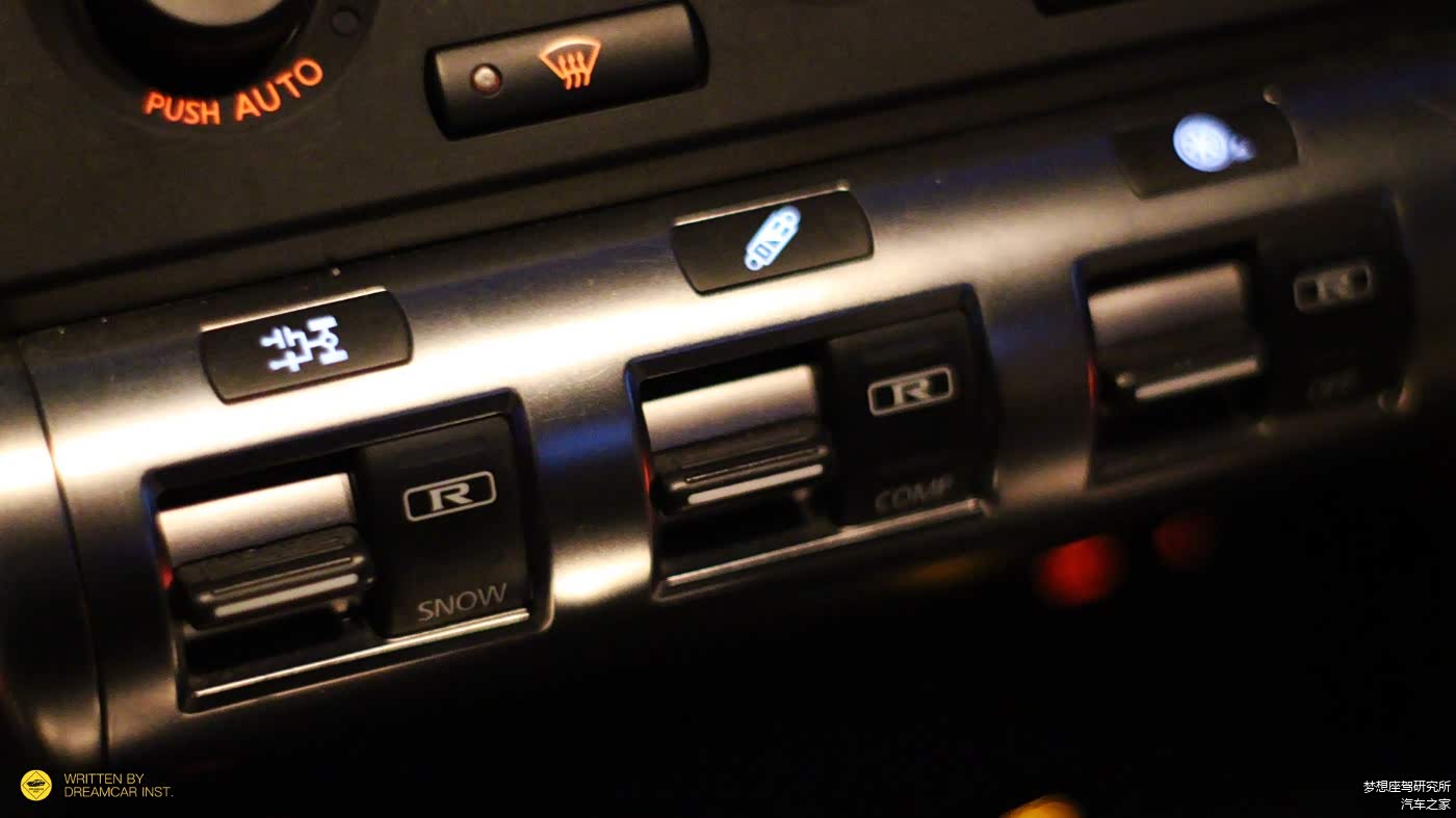 整个中控台唯一的看点,就是这块行驶状态设置的面板了,内饰中难得的金属质感,功能依次排布:左侧是底盘驱动模式,中间是避震硬度调节,右侧是限滑控制。