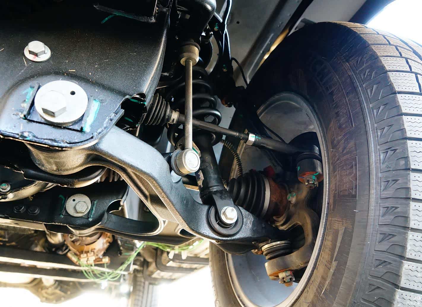 属于第2种技术状态的前悬架,从扭杆弹簧改为作用在下A型摆臂的螺旋弹簧+减震器总成,提高了舒适性,减少异响、简化装配工艺。