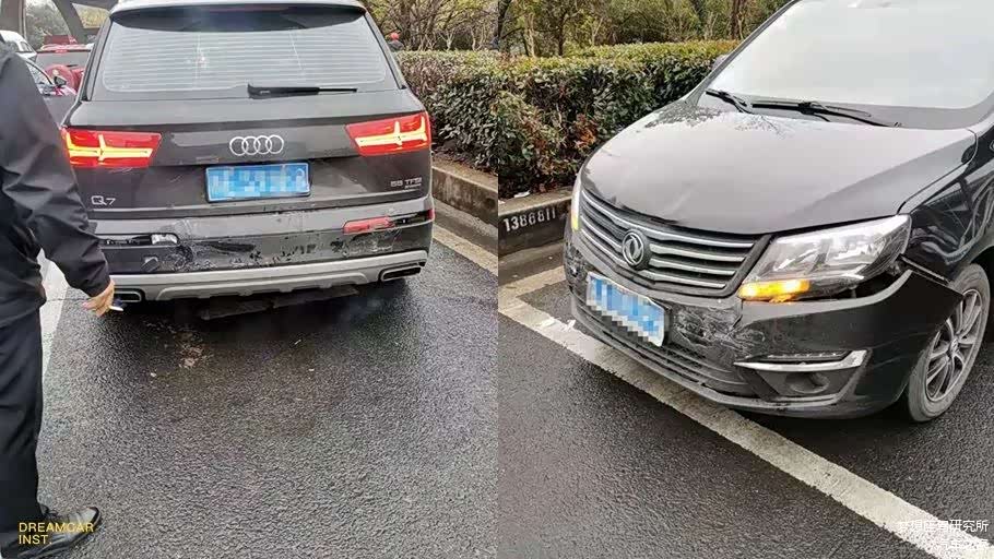 前面一辆Q7也被殃及,不过受损很轻,风行其实也不算严重。