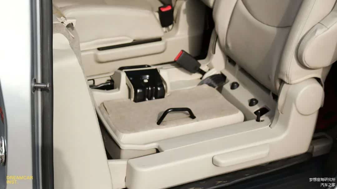 右边座椅下方还有个置物架,后排坐两个人时,功能分配是比较自由的。