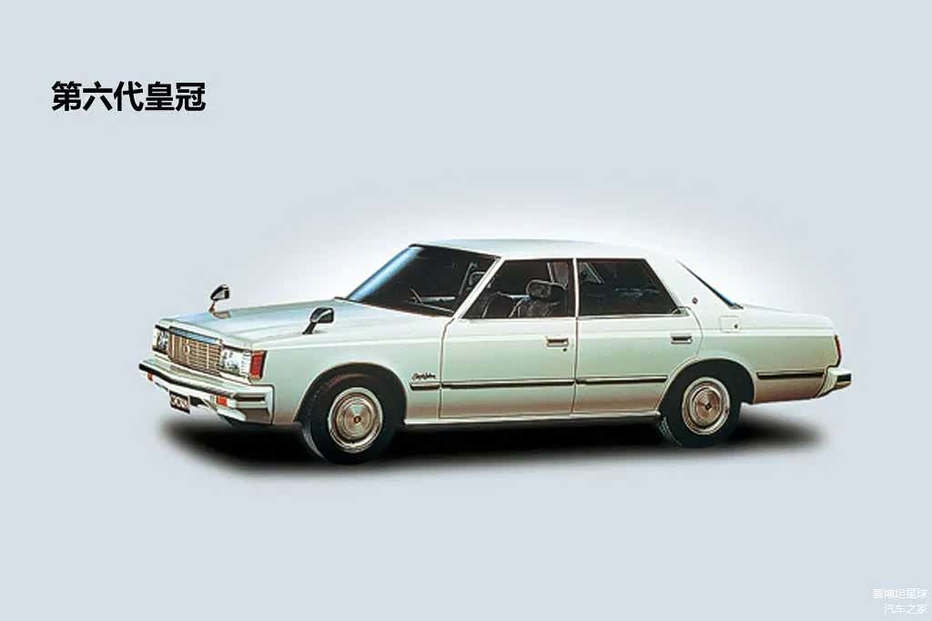 1979年第六代皇冠,搭载2.8升直列6缸SOHC发动机,配备了涡轮增压,在提高动力性的同时,油耗也得到了提升。外观上它比上一代更加硬朗,彻底摆脱了“美系仿车”的头衔,并且有着独一无二的珍珠云母色车身。