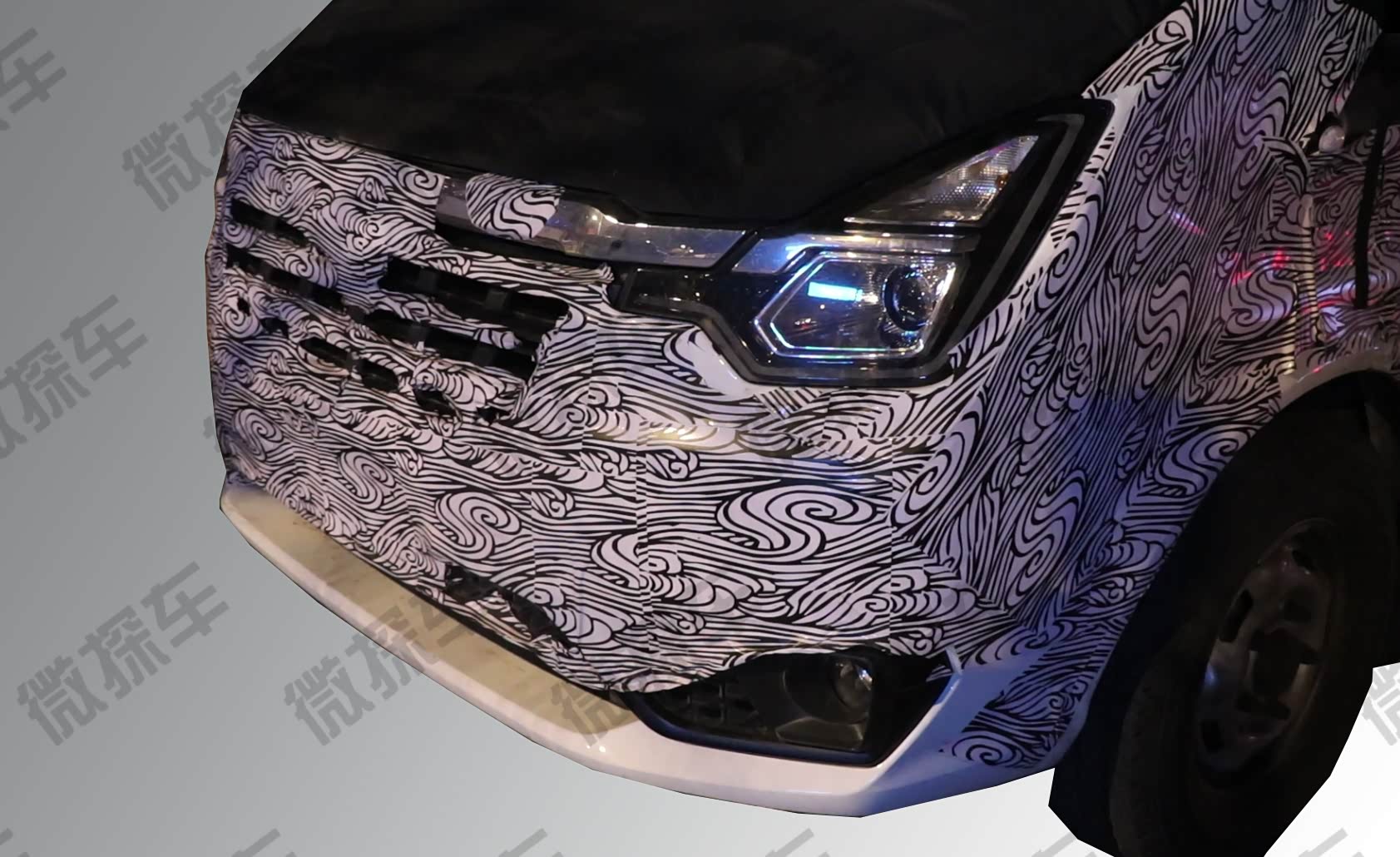 虽然贴着伪装贴纸,但前唇以及前大灯组都暴露在了外面,从现款的梯形前灯更改为不规则形状,前杠突出,前进气格栅面积有所增加,并且把福特Logo的位置向上调整,与大灯处于同一水平位置,与现款车型相比较,新款更加具有运动感,少了现款的厚重感。