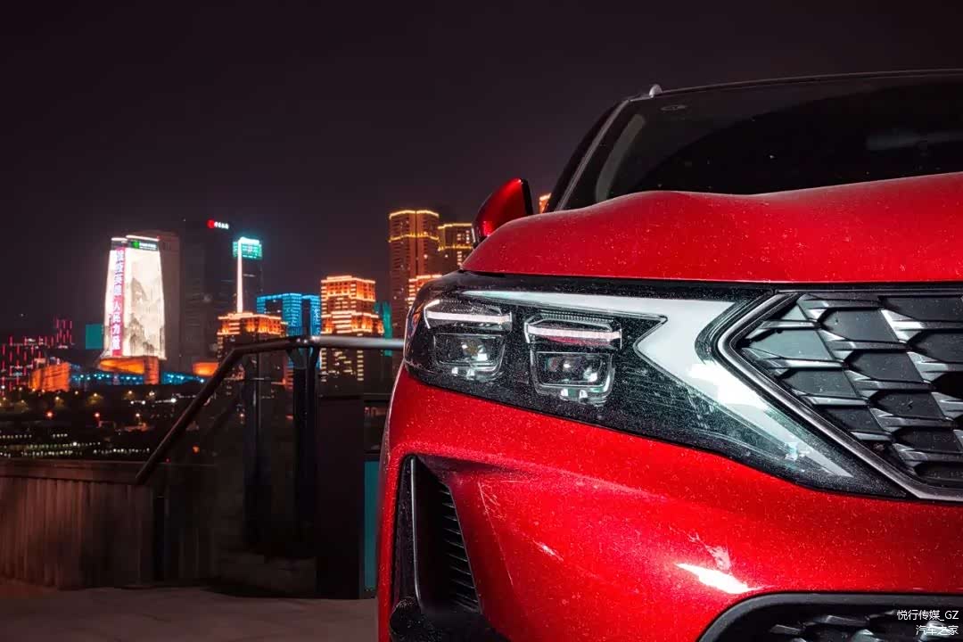 或许是熟路,广东的高速对于我们来说并没有什么难度,尽管下着大雨,宽敞的车道还是让人开着舒心,最重要的是,手中的这款GS4 coupe跟传统的GS4开起来确实要有很大区别。首先要从外观设计说起,相比GS4的方正大气,coupe从前脸开始便注明了其更为运动的身份,暗黑色剑雨式点阵格栅,被红色横条一分为二,增加了层次感更显运动气息,不过最为特别的还是闪电型的LED日行灯,仿佛就是速度的象征,点亮之后辨识度极佳,coupe仍旧延用了酒窝设计,至少还找回了一些GS4的感觉。