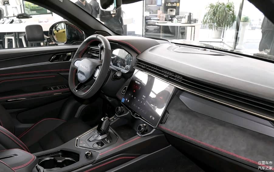 领克的家族化设计就是恨的恨死,爱的爱死,最初我也不是适应,但是习惯之后感觉别有一番风味。而内饰则没有被家族化的设计限制,方向盘、屏幕和出风口都经过了重新设计,Alcantara材质配合红色缝线确实也营造出了豪华感和运动氛围。