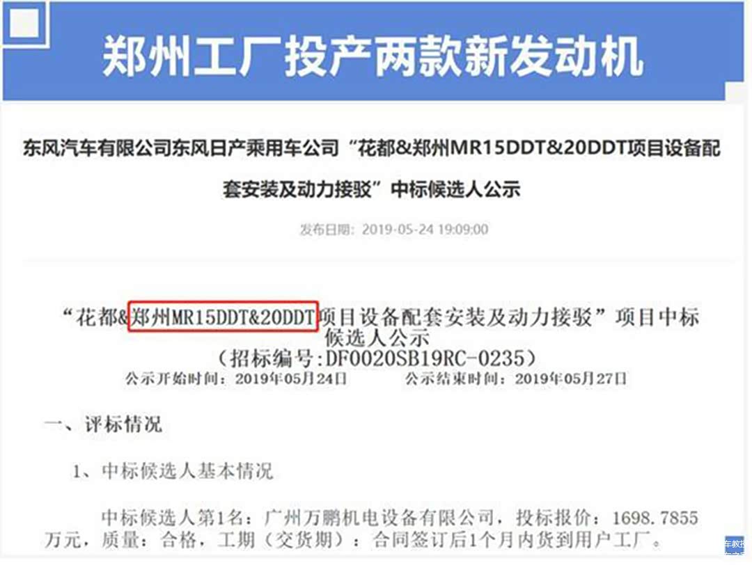 根据目前关网上东风日产的招标信息,1.5T三缸发动机会在花都和郑州两个工厂投产,大概2020年第三季度正式下线,将有可能搭载在全新奇骏上。未来这台1.5T发动机还将会搭载在日产逍客等车型上,以取代日产目前入门的2.0L自吸车型。VC-Turbo发动机还将与日产e-power混动系统匹配,进一步降低油耗及噪音震动。