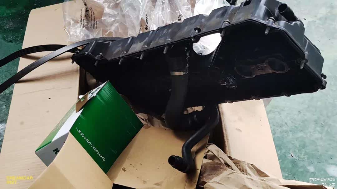 这次用的是副厂件,质量不错,才一千多(原厂X2),盖罩总成包含了胶垫和油封(升程电机和偏心轴位置传感器),而且还有全新的铝制螺栓,性价比简直了。同时,更换了机滤底座垫和机油散热器垫,还有水管和防冻液。