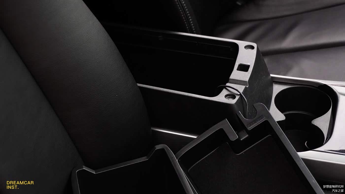 隔板下是一个巨大的储物空间,前部还有电源和AUX接口。