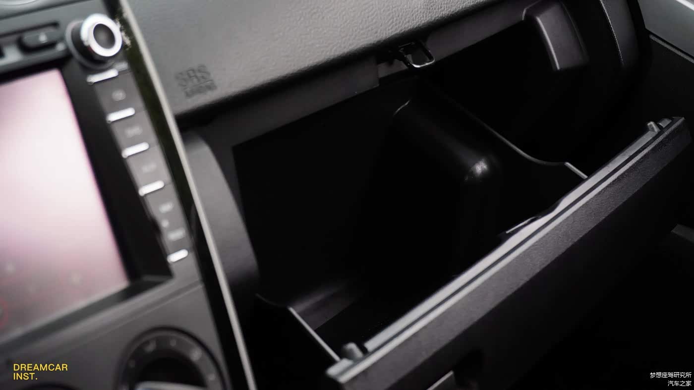 副驾驶的手套箱空间还可以,但没有做分隔,不如马5上做的实用,虽然能放很多东西,却只能杂乱地堆在一起。