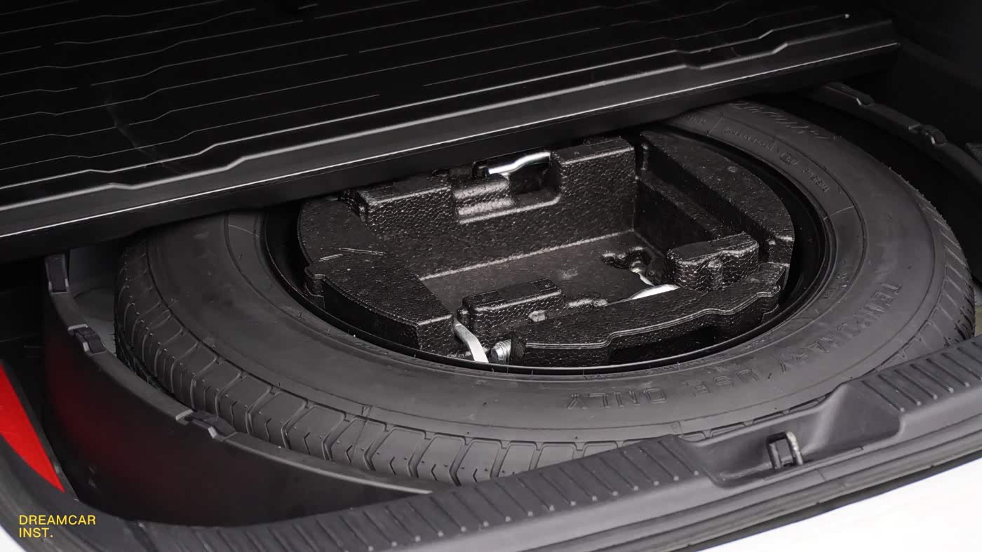 盖板下是随车工具和一个非全尺寸的备胎,这可能是我见过最大的非全尺寸备胎了,还未曾落地使用,联想到TA用的轮胎,想用上备胎确实也不容易。