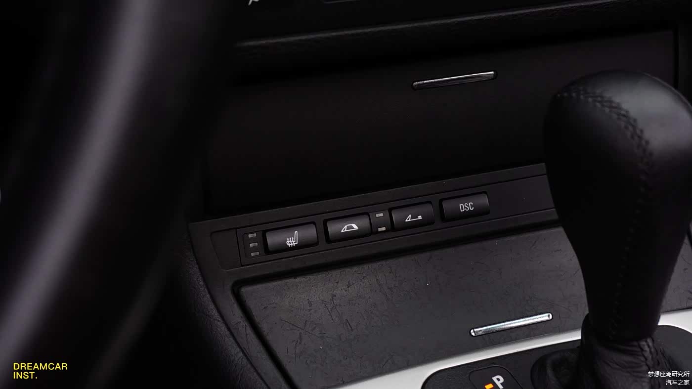 档把前方,在储物盒和烟灰缸中间,陈列一排按键,有座椅加热,开合顶棚(需要一直按着,结束后没有提示音,每次都要多按会儿才放心)和DSC(也就是ESP,宝马自家都有几种不同的叫法,但那也不重要了,想起步挠胎漂移甩尾要先点亮TA,仪表有指示灯)的开关。
