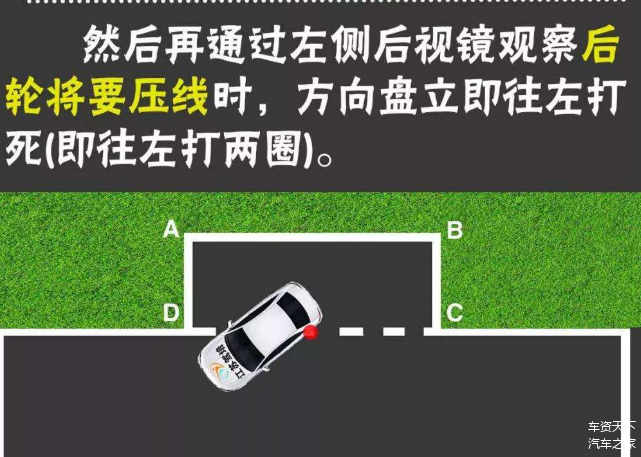 再来停车出库技巧:首先,在原地方向盘向左打死,然后起步,看着后视镜,知道车库的的右下角出现在你的后车镜时,迅速把方向盘回正,直走,等到车子大概出去一半的时候再向右打,等车子完全出去的时候调整车身,只要把车身调直就行了。