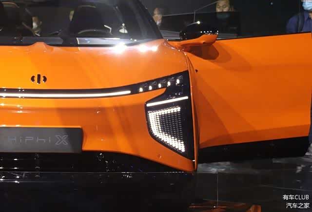 高合HiPhi X外观造型,看上去十分前卫。而新车的两侧大灯样式十分狭长,结合两侧大灯中央的LED灯带设计,使其富有极强的视觉效果。同时,新车两侧还运用了大尺寸的进气口,进一步彰显了它的运动气息。