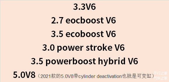 6款发动机,5款V6的,1款V8,全部搭配10速,