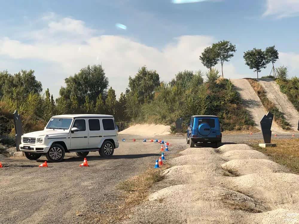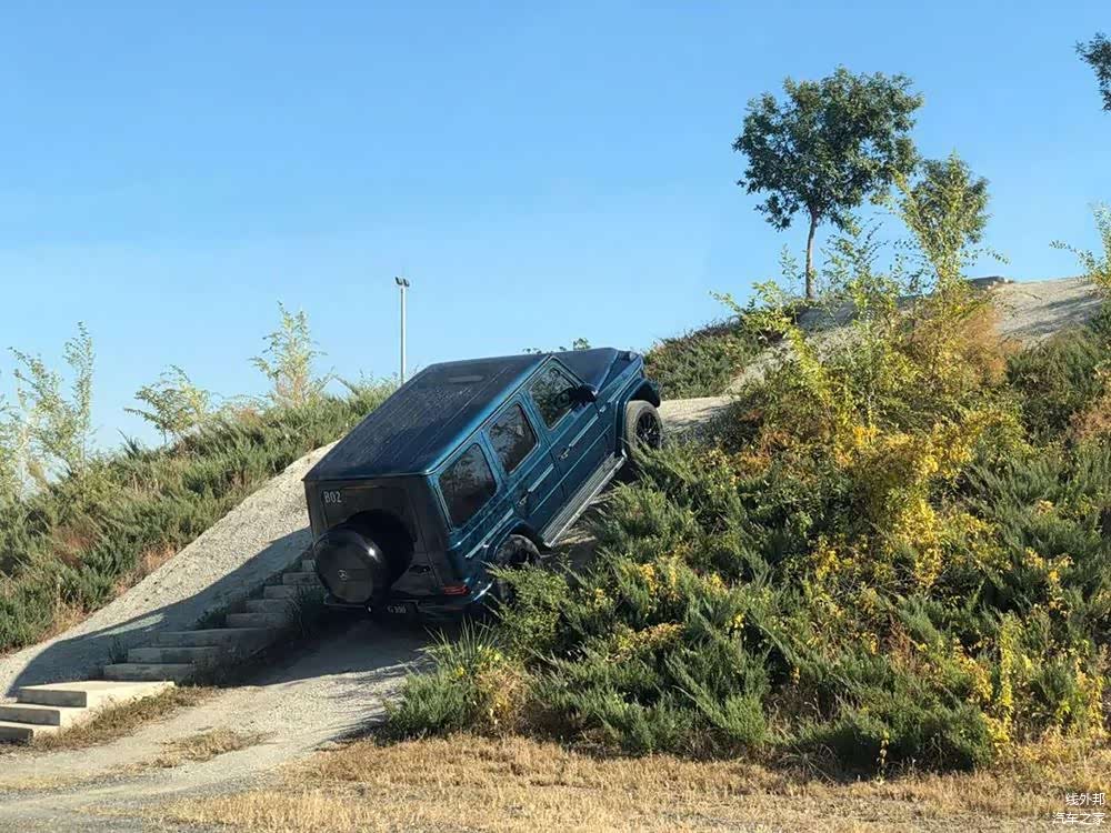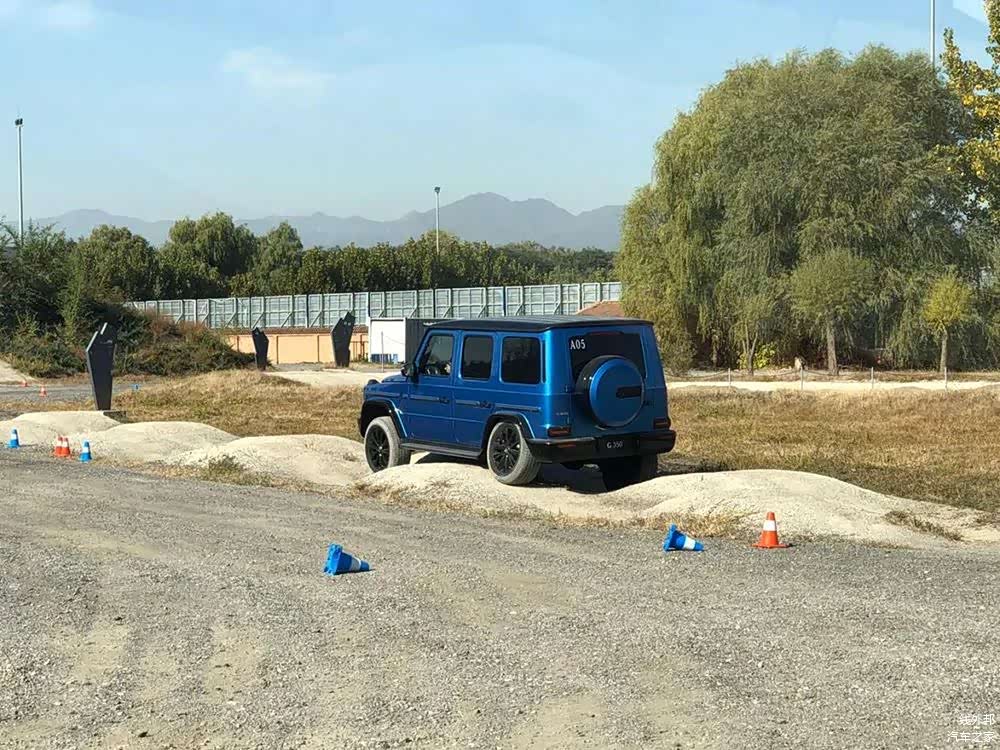 在场地试驾的越野科目中,G350在上驼峰时,只要将油门稳在2100转左右,车辆就能凭借轻松爬上驼峰,整个过程毫不费力。通过难度不高的交叉轴时,即使不用差速锁,G350也能凭借自身的长悬挂行程和惯性通过,只不过在没有用差速锁时,你需要深踩油门来换取更多的动力让车辆脱困,虽然会出现轮胎打滑的情况,但电子限滑系统能迅速介入锁定空转的车轮。所以,对于越野来说,可能奔驰G350没办法和路虎卫士一样去攀爬岩石,但中重度越野也一样不怂。