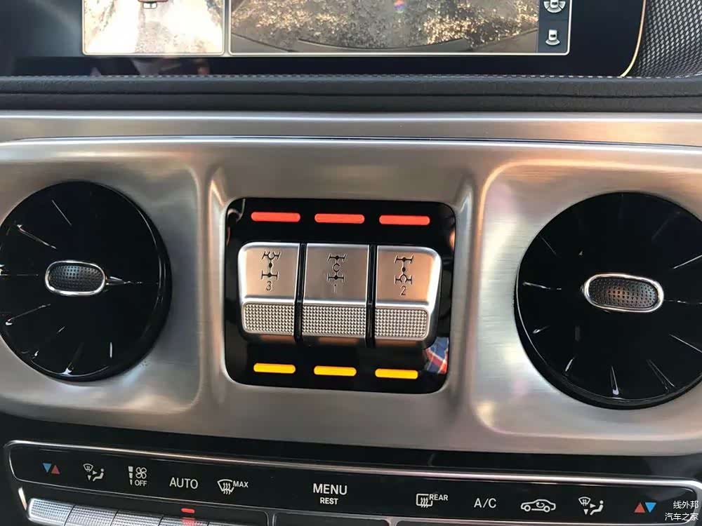奔驰G比较厚道的地方就在于,不论G500还是G350都配备了传说中的三把锁,而且也都配备了全时四驱系统。在常规状态下,前后轮的动力分配为40:60,加上三把差速锁和2.93倍的扭矩放大,即便是2.0T发动机,开启四驱之后,都有着不错的扭矩表现。