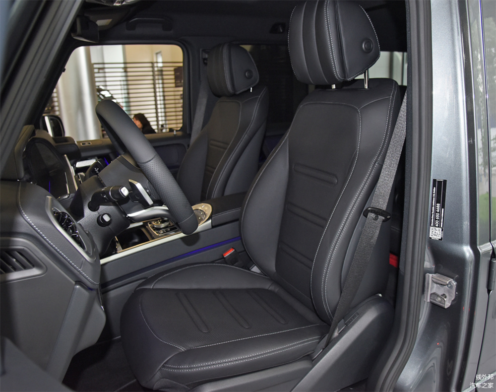 奔驰G350的前排座椅材质偏硬,好在包裹性不错,且座椅两边的侧翼具有充气功能,在激烈驾驶或是越野过程中,能自动充气给到驾驶员良好支撑。