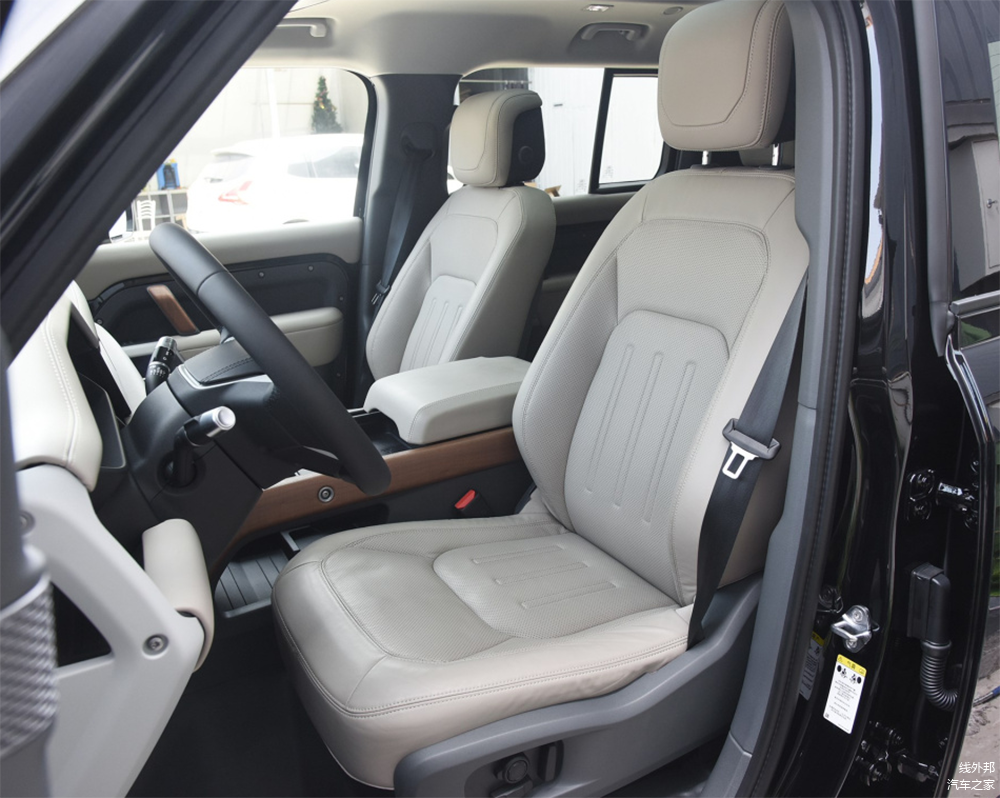 如果说两款车的内饰氛围都透着点野性,那么座椅给你带来的感觉就完全不同。卫士的坐姿很高,即便调到最低也很高。前排座椅属于宽大的类型,比较柔软,而且配备了腰托,只不过个人认为,长途行驶的话,它的前排座椅会让人腰酸——即便我的身材要比一般人壮一些,勉强符合欧美人的体型,长途下来也会觉得腰酸。